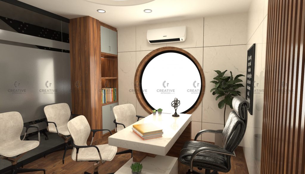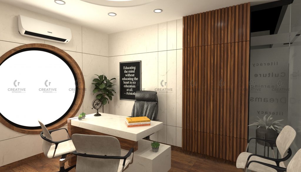 The CSPS Office in Islamabad, designed by Creative Interiors Pvt Ltd, reflects a modern and functional workspace tailored for productivity and professional engagement. The design integrates clean lines, warm wood textures, and neutral tones to create a balanced and professional environment.